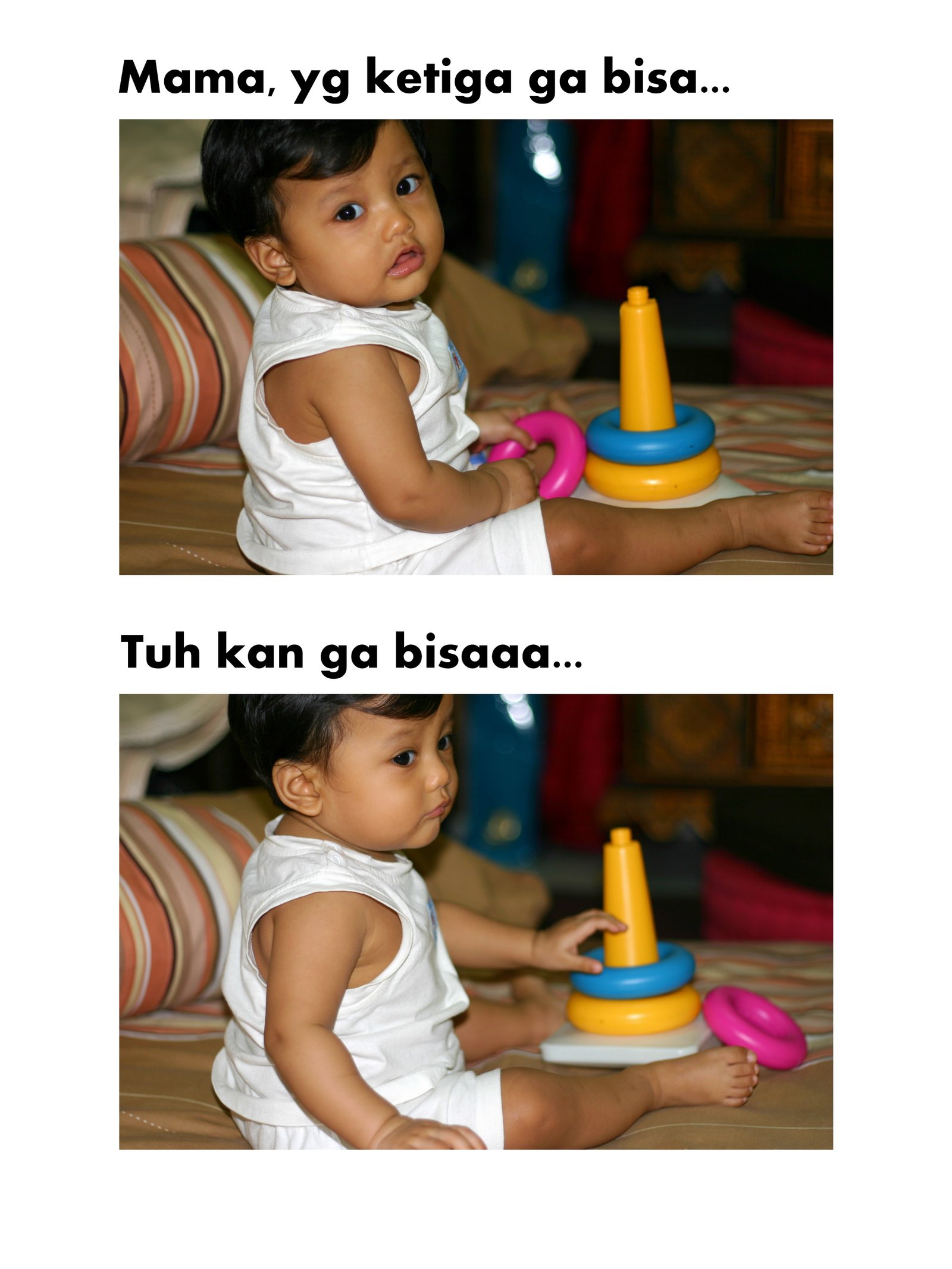 hahaha…lumayan tuh ti…dulu waktu anakku si putu aq kasi nyusun ring gitu yang ada, sudah melayang kemana- mana tuh ring nya hehe…emang kalo anak co lebih ga sabaran aza…