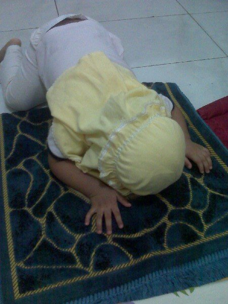 Anak 19 bulan ini juga jadi pengingat solat Mama. Kadang dia yang ambil sendiri sajadahnya.. minta “sowat” (solat,red), allo abat (allahu akbar).