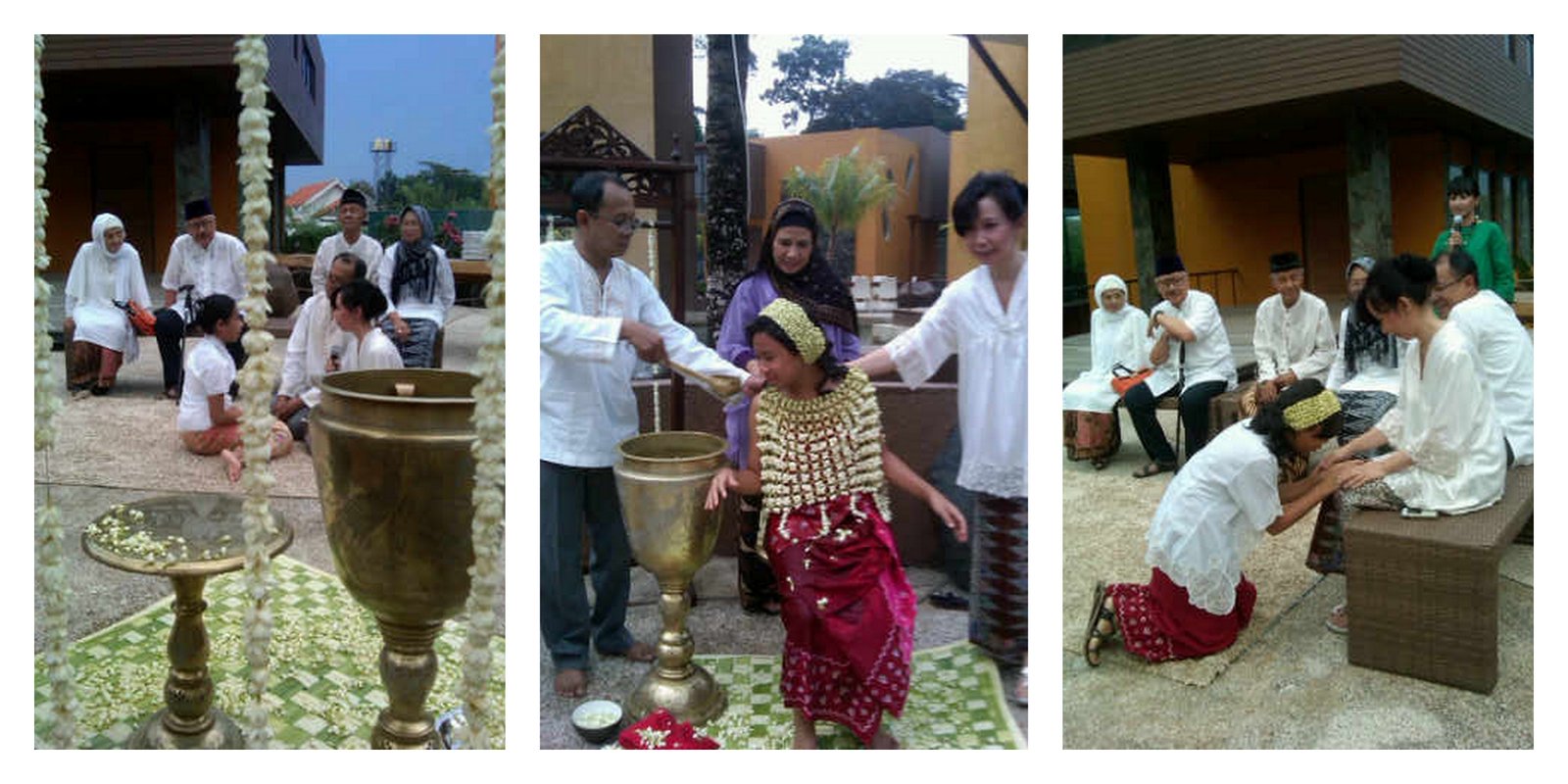 Hari Minggu kemarin dalam sehari kita dapet undangan dari keluarga. So it’s a big family day! Dan uniknya dalam 1 hari itu kita dateng ke 2 upacara adat dari 2 daerah berbeda. Yang pertama adalah upacara Baayun anak ala Banjarmasin. Kan keluarga ayahku dari banjarmasin kalimantan selatan. Seru deh hihi.. jadi kan ini kaya upacara bayi gitu. Ada pengajian, trus “pengantennya” turun, keliling disalamin tamu, baru di ayun pake ayunan kain yg dihias gitu. Ada pelaminannya segala, dan kue-kue sesaji ala banjarmasin yang super lengkap.