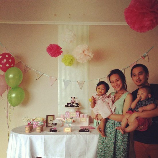 Yang bikin iri di New Zealand itu dijual pernak pernik party yang emang lucu-lucuu dan muraah. Tier piring 3 tingkat gitu bisa cuma 100-200rban. Disini kan 300-400rban cyiin.. Next project-nya Nia adalah ulang tahun anaknya sendiri yang ke-1. Yeaaaay Baby Milo is turning one on October! Masih lama yah.. tapi dari kmrn2 loh sibuk bbm-an soal persiapannya karena mau dirayain Jakarta. Nia minta bantuin aku setting dessert tablenya, tapi ngeliat hasil karyanya kayanya ga butuh bantuan apa-apa deh, udah keren 😀