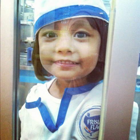 Trus udah siang tuh, Zahra udah mulai ngantuk, udah rewel gak mau antri kerja jadi dokter, ga mau ngapa-ngapain, yaudah kita beli Pizzania dulu, yang tyt enaaaak.. rotinya empuk, kejunya juga gurih. Abis makan baru rada semangat lg trus kita jelajahin di lantai 2. Lah ternyata permainannya banyak juga di lantai 2. Ada dapur-dapuran untuk anak dibawah 4th, ruang permainan kaya puzzle, buku dll lengkap ama sofa dan piano kecil, salon kecantikan, rumah kaca berkebun, dan paling banyak di lantai atas itu profesi pekerja pabrik gt, pabriknya macem2 dari mulai coklat silver queen, pop mie, wafer sampe susu frisian flag. Zahra suka disini soalnya abis kerja selain dpt uang juga dapet produknya. Dapet susu Frisian Flag deh π