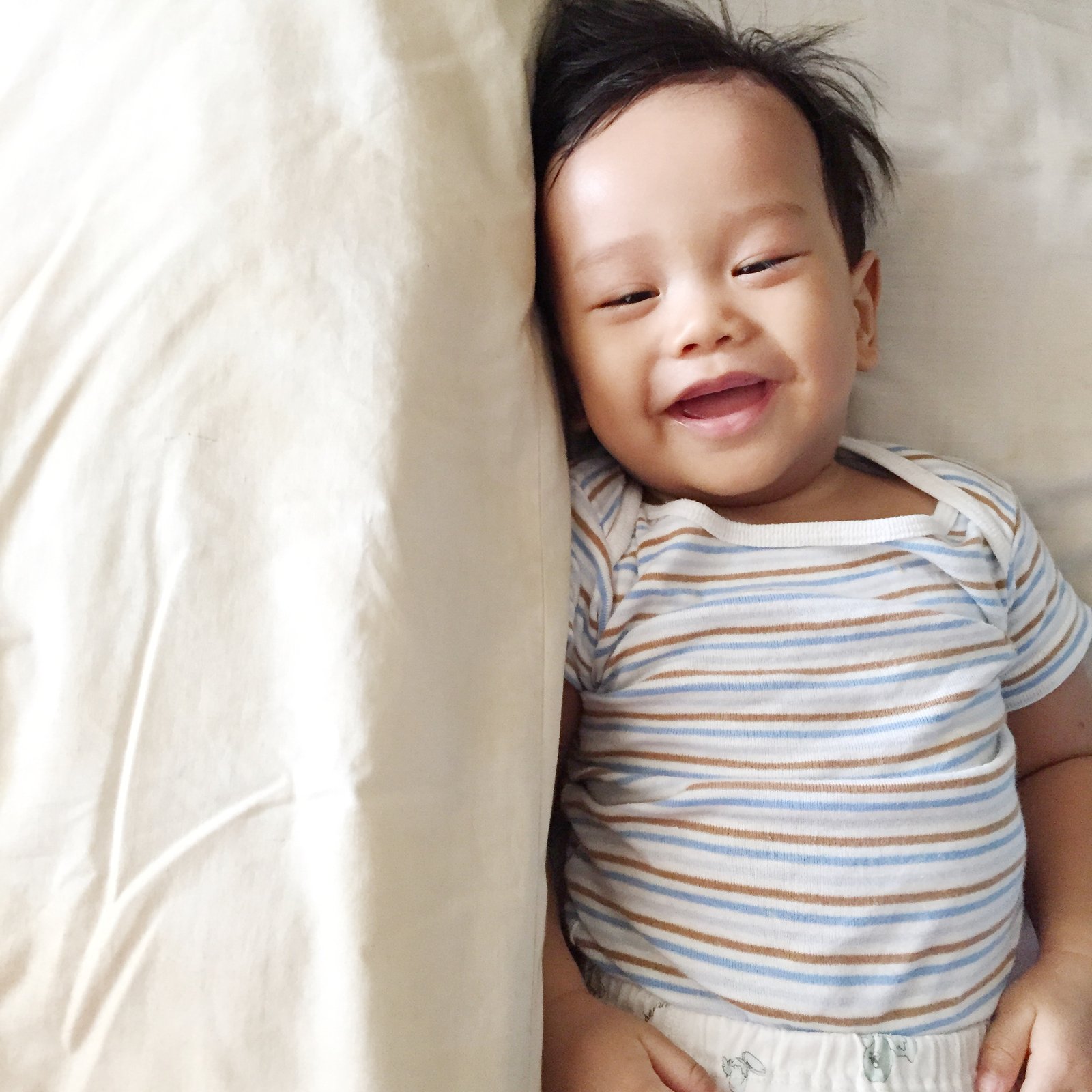 Banyak yang bilang Zayyan (10 bulan) itu sumeh banget. Emang sih ni bayik duh Gusti Alhamdulillah baik bener. Abis pup senyum, abis makan senyum, lagi tengah-tengah nangis kalo kita godain bisa-bisanya senyum juga, lagi demam aja bisa senyum-senyum terus. Kok bisa ya, why are smiley babies smiley?