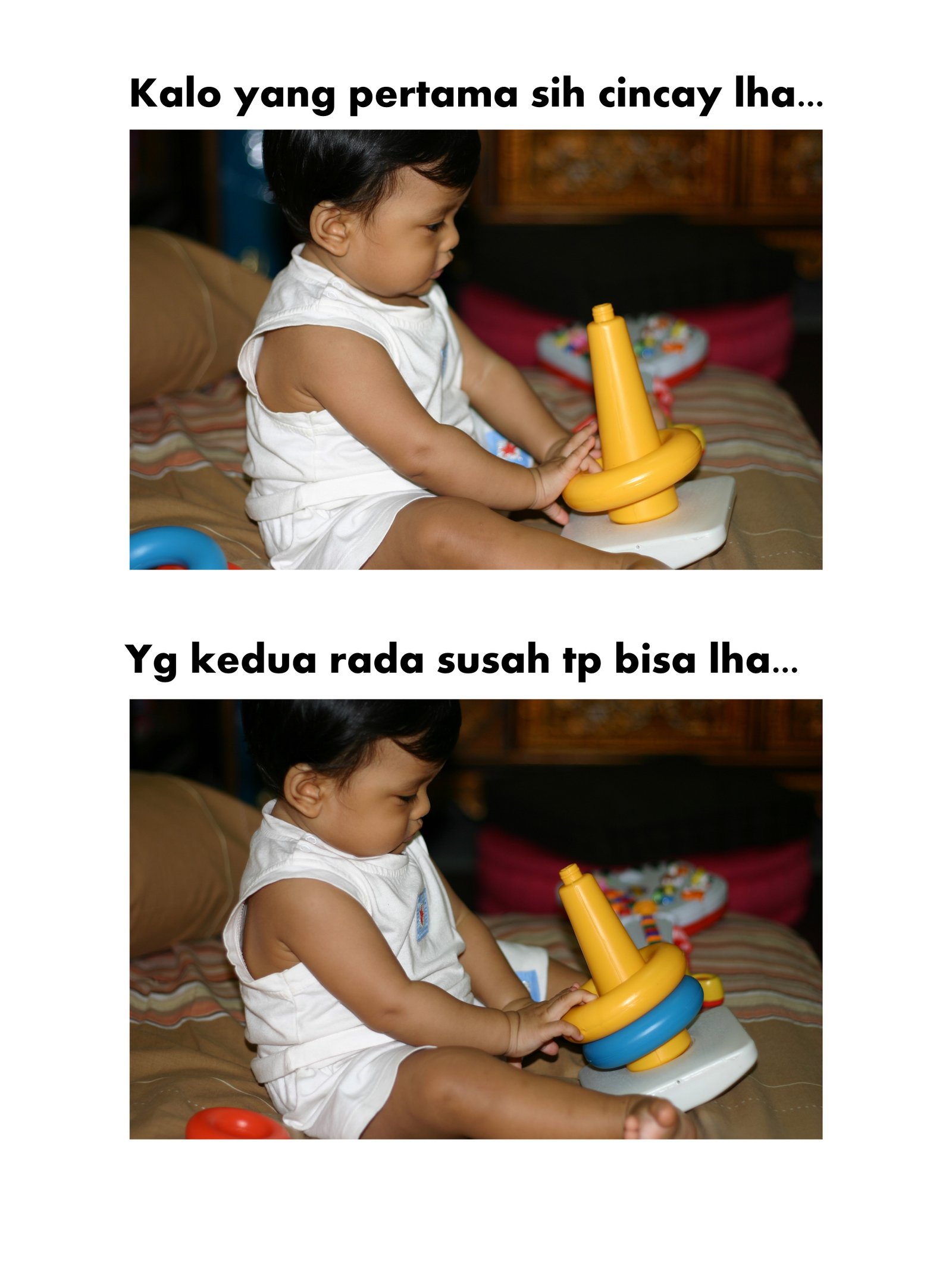 hahaha…lumayan tuh ti…dulu waktu anakku si putu aq kasi nyusun ring gitu yang ada, sudah melayang kemana- mana tuh ring nya hehe…emang kalo anak co lebih ga sabaran aza…