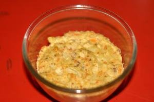 - Masukkan wortel dan tomat, masak sampai kental, beri keju parut, aduk rata, angkat, dinginkan.
