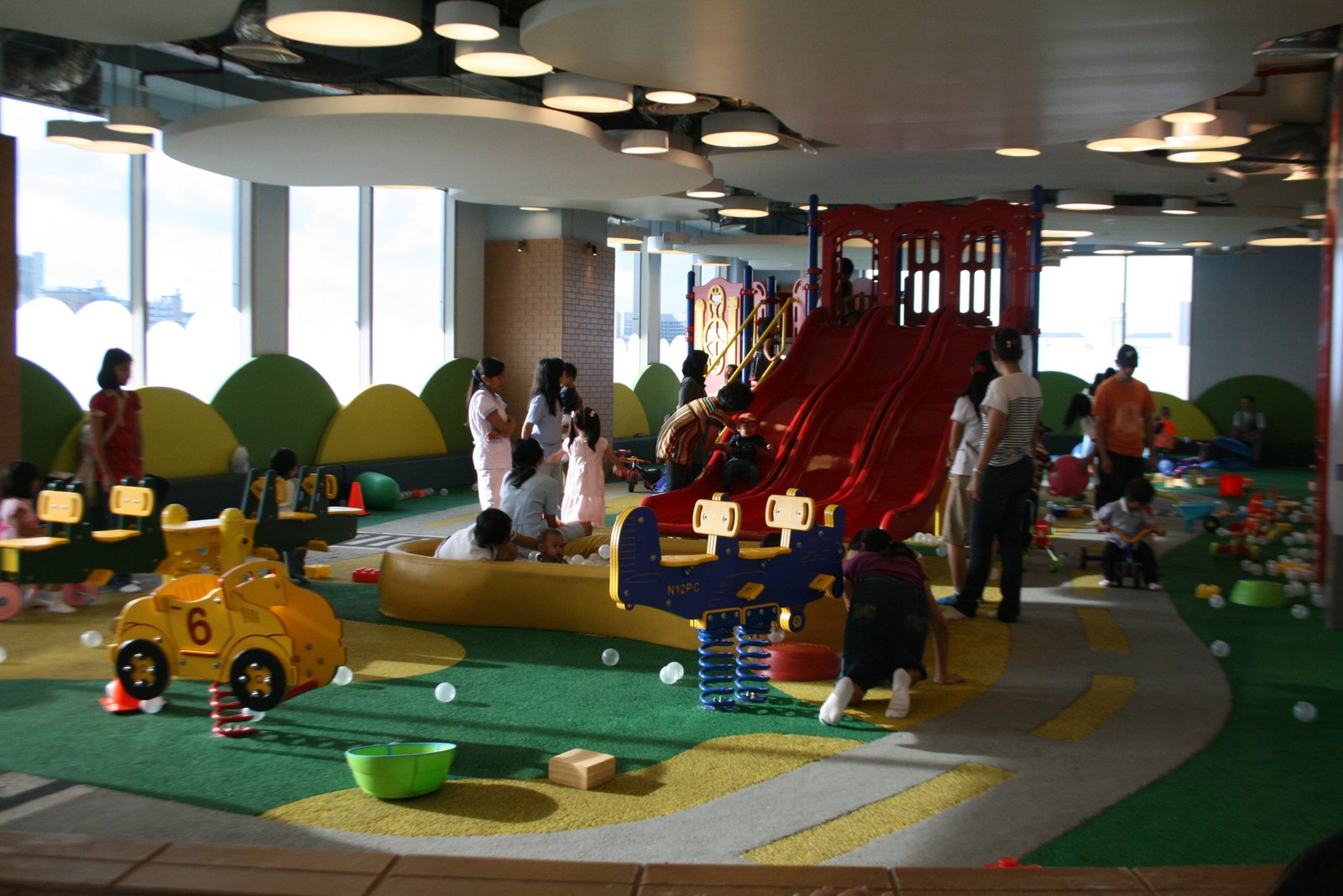 Di pasaraya grande ada playground nya juga mbak. Namanya PASHA. Ada cafe nya juga deket playground nya,jd emak2nya bisa sambil ngobrol dan makan 🙂