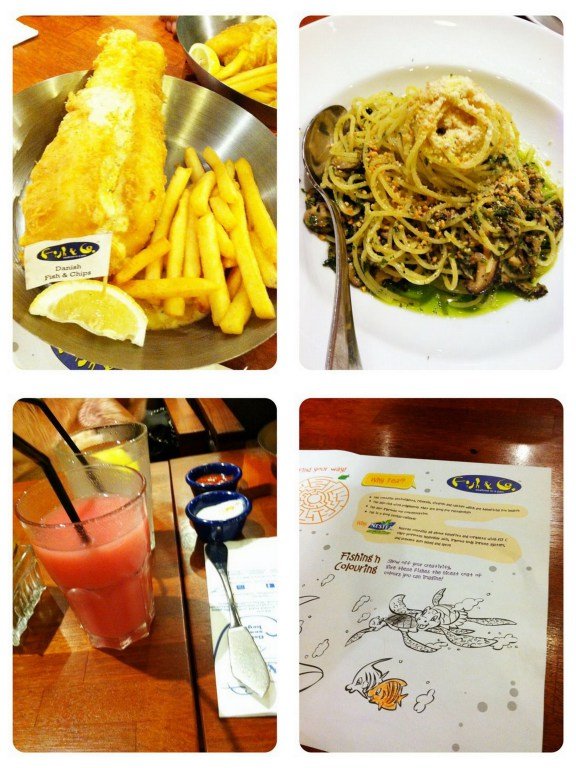 Ini udah agak lama sbnrnya makan di Fish n Co pake voucher Disdus. Kira2 seminggu sebelum natal deh.. Yang mana agak menyesal order tambahan fish n chips lagi karena… eneg. Emang enak sih awal-awal.. tapi entah kenapa belakangannya eneg bgt.. blenyek gitu gimana sih.. trus spagetty al fungi nya yaaaa so so deh… tapi untuk order lagi kayanya ogah deh. Salah orderan nih emang.. udah bener seafood platter aja kali yak.. sama cumi yang lada hitam itu kayanya enak.. atau salad udang. Maybe next time π