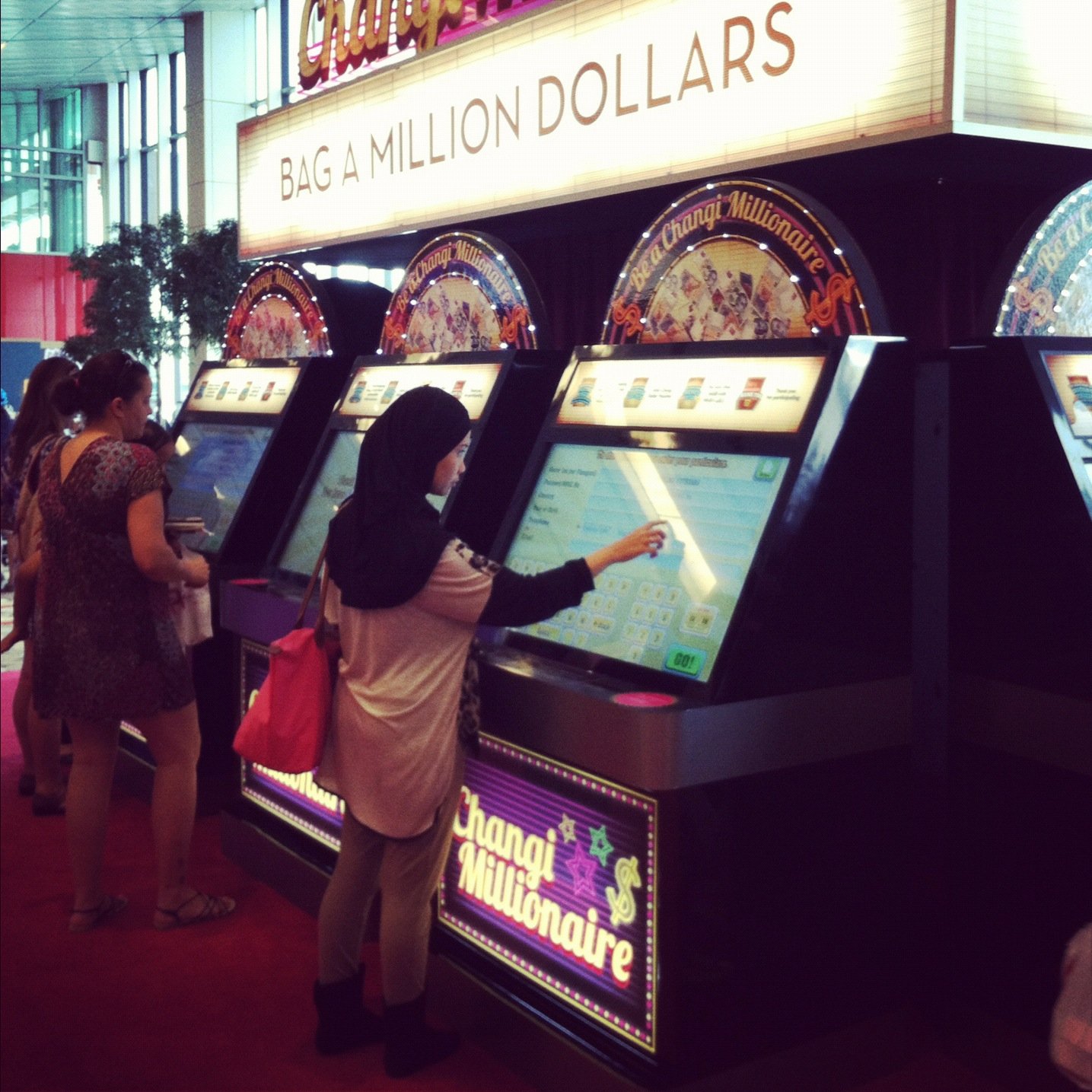 Lagi ada undian gitu di Changi kmrn, tiap belanja brp dolar gitu dapet kesempatan lucky draw. Pantesan orang rame apaan itu di counter Be a millioner, kirain judi π