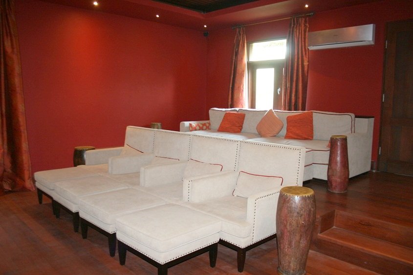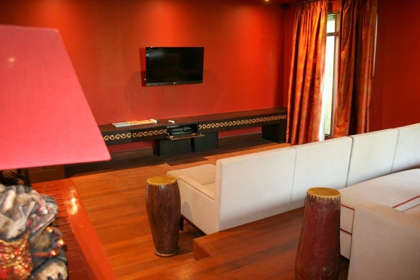 Masuk dari pintu utama Villa, sebelah kanan ada ruangan dengan daun pintu yang lebar. Kamar tidur? Bukan.. Ada ruangan Home Theather ceritanya.. tapi menurut aku TV nya kurang besar, coba digedein dikiiit lagi deh.. jadi berasa bgt home theater-nya. Tapi tetep aja keren.. yabeees..