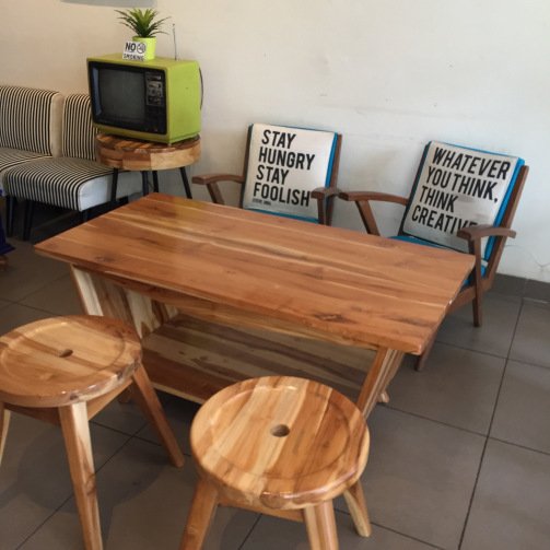 Ini homey banget deh restonya, dan makanannya pun lumayan enak. ada free wifi, dan colokan listrik, dan yang paling penting, agak sepi kalau pagi jadi enak private berasa rumah sendiri hahaha..
